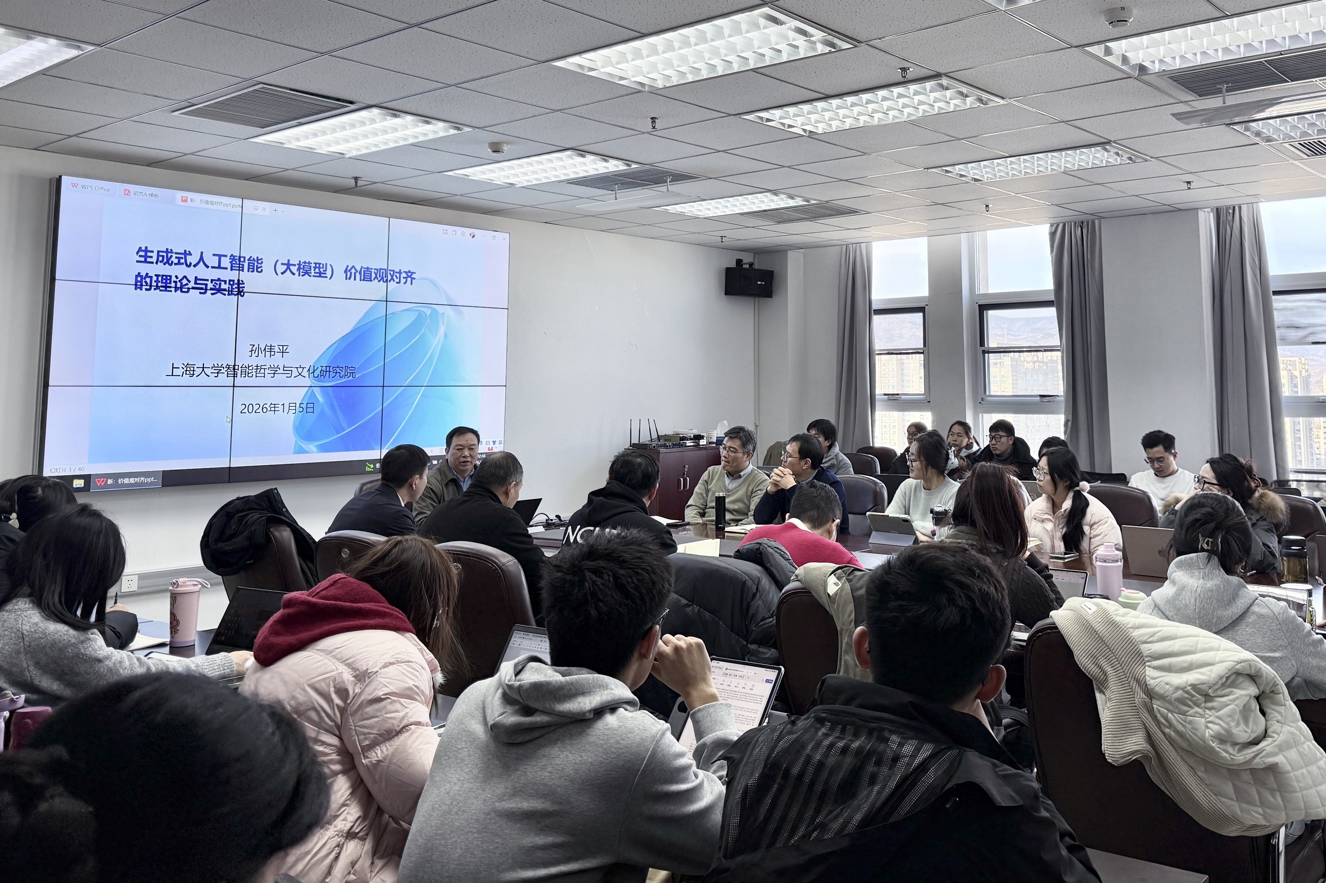 1月7日下午,由北方工业大学马克思主义学院主办的“马克思主义理论与实践前沿问题”北方大讲堂系列活动在瀚学楼1208会议室顺利举行。上海大学伟长学者特聘教授、中国社会科学院大学马克思主义学院教授、博士生导师孙伟平应邀出席,并以“生成式人工智能价值观对齐的理论与实践”为题,带来专题讲座。讲座由马克思主义学院院长张茂林主持,学院师生积极参与。